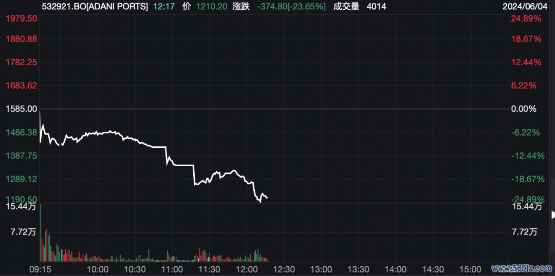 个股方面,印度阿达尼旗下公司Adani Ports跌超23%,为2023年2月以来最大跌幅。