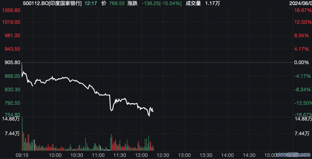 印度国家银行跌超15%,为2008年10月以来最大跌幅。