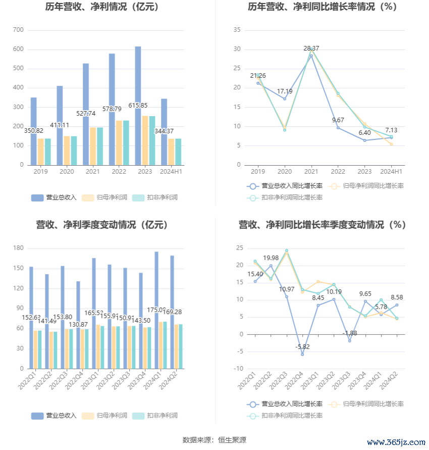 根据半年报,公司第二季度实现营业总收入169.28亿元,同比增长8.58%,环比下降3.32%;归母净利润66.36亿元,同比增长4.52%,环比下降5.38%;扣非净利润66.62亿元,同比增长4.73%,环比下降5.54%。