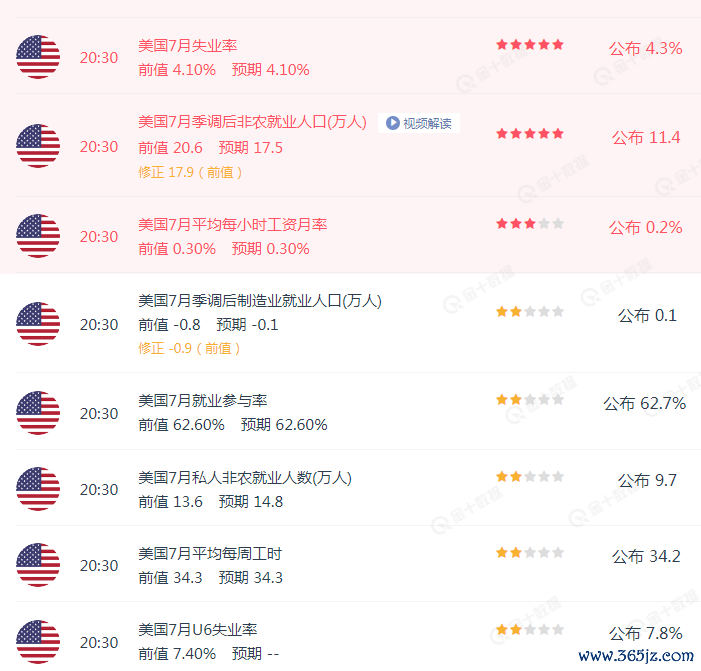 美国7月非农数据出炉