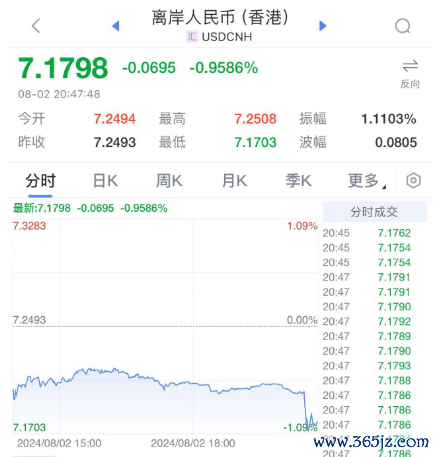 离岸人民币兑美元短线拉升,日内一度涨超800点,收复7.18关口,创3月以来最佳单日表现。