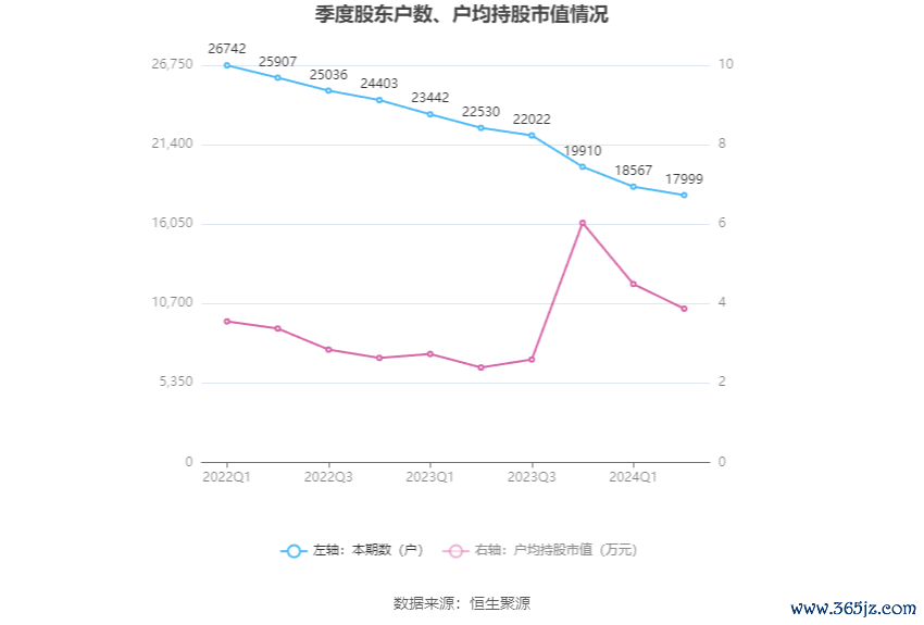 筹码集中度方面,截至2024年上半年末,公司股东总户数为1.8万户,较一季度末下降了568户,降幅3.06%;户均持股市值由一季度末的4.49万元下降至3.87万元,降幅为13.81%。