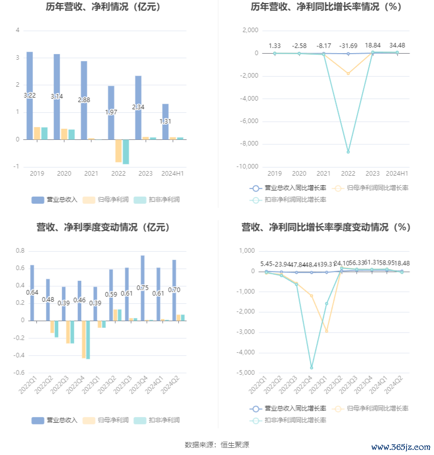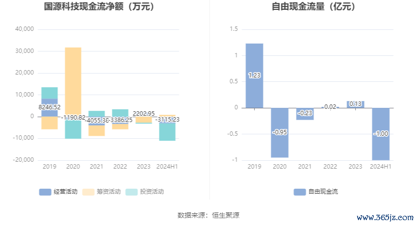 2024年上半年,公司经营活动现金流净额为-3115.23万元,同比减少2037.48万元;筹资活动现金流净额800.37万元,同比增加3016.21万元;投资活动现金流净额-7970.23万元,上年同期为-1.01亿元。